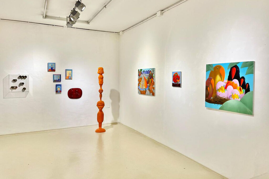 A vibrant group exhibition where five artists explore figurative imagery through painting and sculpture, blending irony with wonder, and drawing on historical, philosophical references, and surprising hybridizations. The exhibition reflects the evolution of contemporary styles shaped by the artists’ formation in the 1980s.