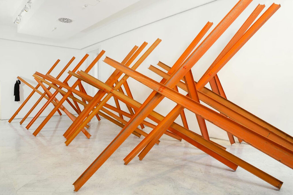 Cardi Gallery presents the group exhibition Monumental, featuring a selection of impactful works that highlight the use of poor materials and essential gestures. The exhibition spans two floors: the ground floor showcases a large-scale sculpture by Jannis Kounellis, along with canvases by Alighiero Boetti, Mario Merz, and Giuseppe Penone. The first floor is entirely dedicated to a multi-panel installation by Luciano Fabro, a founding figure of Arte Povera.