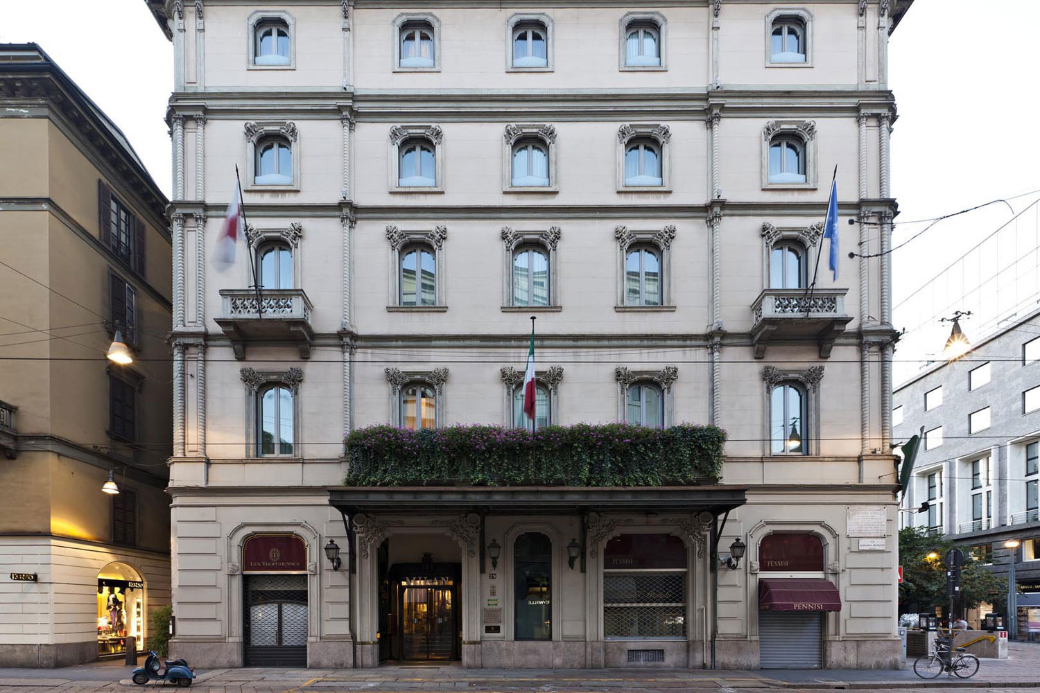 L’Albergo di Milano, oggi Grand Hotel et de Milan, fu inaugurato sabato 23 maggio 1863. Il progetto venne affidato all’architetto Andrea Pizzala, noto soprattutto per aver realizzato nel 1831 la Galleria De Cristoforis, qui a Milano. Il fabbricato era di dimensioni più ridotte rispetto all’attuale. Un edificio di stile eclettico sulla cui facciata, e più precisamente nei suoi ornamenti, erano stati impiegati riferimenti decorativi propri del repertorio neogotico. Questi riferimenti colti erano tratti dalle opere pubblicate in quegli anni, ispirate al movimento romantico inglese: il cosiddetto “Gothic Revival”. L’edificio si espanse a più riprese e nel 1879 venne aggiunto un nuovo piano. Verso la fine dell’ottocento acquisì una notevole importanza, poiché era l’unico albergo della città fornito di servizi postali e telegrafici e per questo frequentato dai diplomatici e dalle persone d’affari. Comprendeva circa duecento locali, un ascensore idraulico “Stigler” (ripristinato nel recente restauro ed attualmente funzionante), un giardinetto d’inverno e saloni da pranzo lussuosamente arredati.