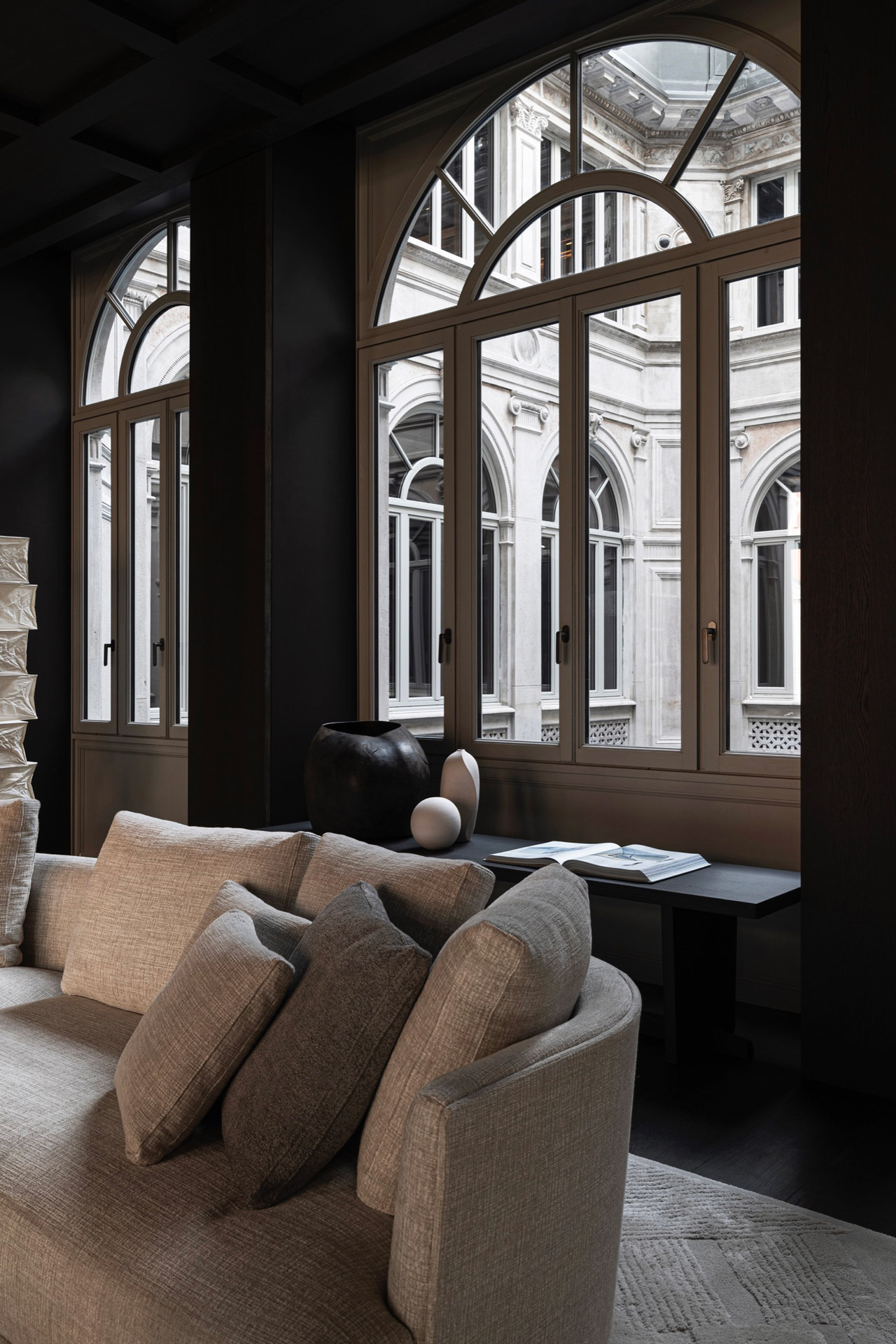 Palazzo Molteni conserva il carattere intimo e sottilmente introverso che contraddistingue gli edifici milanesi. Vincent Van Duysen ha immaginato un percorso che si sviluppa attraverso i sette piani dell’edificio e più di 3.000 metri quadrati di superficie, in una successione di spazi molto diversi tra loro, che richiamano la disposizione originale della residenza storica. Nel suo complesso, rappresenta un ecosistema di reciproca valorizzazione tra arte e design, dando vita a una grande vetrina sullo stile di vita italiano.